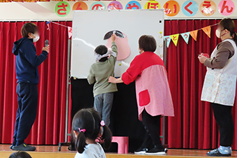 令和8年も子ども達に笑顔と元気を届けます。 月に一度の屋内フェス♪ お誕生会です!! 1月は、15人のお友達がお誕生日を迎え、ステージにあがりお祝いしてもらいました。 先生達からの出し物のプレゼントは手遊びやお正月にちなんだ遊び「福笑い」、かさじぞうのパネルシアターetc...。 新年最初のお誕生会も楽しい時間となりました。 1月生まれのお友達、お誕生日おめでとう!! ■令和8年1月23日 ゆりぐみマラソン大会
