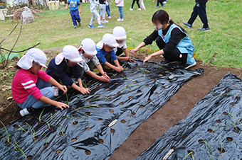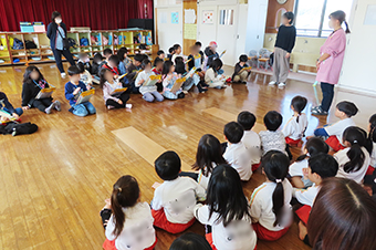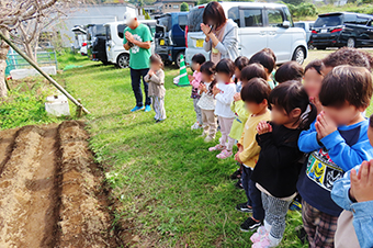 ゆりぐみさんとすみれぐみさんがバスに乗って青島にある青少年自然の体験学習に行きました。 心配していたお天気でしたが、雨も降ることなく、海へお散歩にでかけることが出来ました。 海では、砂浜で貝殻拾いに夢中になり、時々押し寄せてくる大きな波に「キャー!!」と歓声を上げながらとても楽しそうな子ども達でした。 海でたくさん遊んだ後は、青少年自然の家のレストランでお昼ごはん。みんなの嬉しそうな表情に私達も幸せな気持ちになりました。 今年も青島青少年自然の家で思い出に残る最高の1日をすごさせていただきました。 ■令和7年10月21日〜23日 みらいの給食週間 毎日の給食を作って下さっている(株)魚国総本社様が給食を通じてSDGsを知ってもらいたいと今年も企画して下さいました。 代替肉として作られている大豆ミートで作る「ヤンニョム大豆ミート」、地産地消の九州産鶏肉を使用した「チキンカツ&かしわめし」、サステナブルシーフード、ピーチシャークのオシャンティな料理「ピーチシャークグラビティソース」、どれもとっても美味しかったです。 給食を通じて『SDGs』を考えるいい機会となりました。 私達も自分に出来ることから取り組んでいきたいですね。 ■令和7年10月22・23・24日 オープンスクール