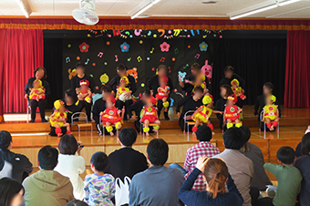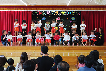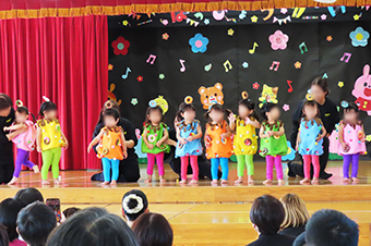 月に一度のお楽しみ。10月生まれのお誕生会です。 10月は、12人のお友達がお誕生日を迎え、ステージにあがりみんなにお祝いしてもらいましたよ。 先生達による楽しい出し物のプレゼントやウェイキーマン(戦隊ヒーロー)も飛び入り参加♪ 全員で踊って大盛り上がり。今月も楽しい誕生会でした。 10月生まれのお友達お誕生日おめでとう!! >>過去の記事を読む<< |
