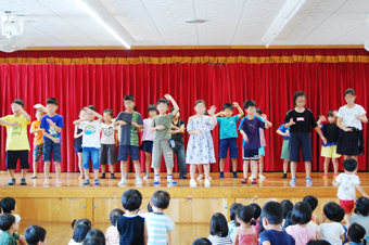 保育士からのだしもののプレゼントはもちろん、最後は夏休みで来ていた学童クラブ(小学生)のお兄ちゃんお姉ちゃんから、夏休みのお礼のサプライズダンスショーもあり大盛り上がり!!
