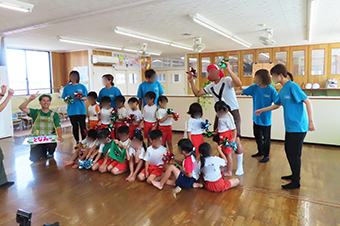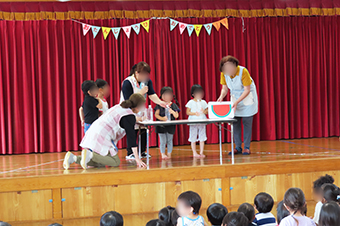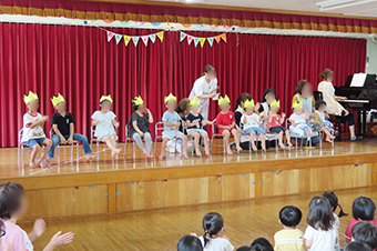 保育士からの出し物のプレゼントや各クラスの歌の発表など7月も盛り沢山の内容で、楽しい誕生会となりました。