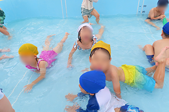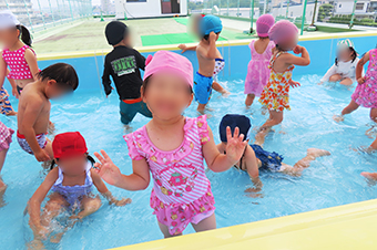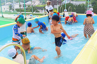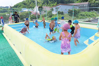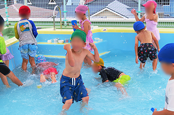 プールでは、子ども達の大歓声とともに楽しそうに遊ぶ子ども達の嬉しそうな表情がとっても印象的でした。