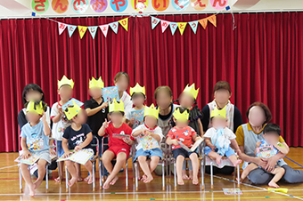 7月は、11名のお友達がお誕生日を迎え、ステージにあがりお祝いしてもらいました。