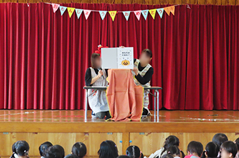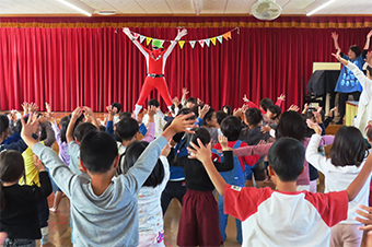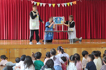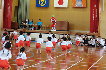 先生達による楽しい出し物のプレゼントやウェイキーマン(戦隊ヒーロー)も飛び入り参加♪