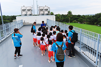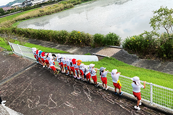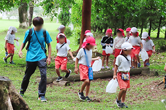 ゆりぐみさんとすみれぐみさんがバスに乗って青島にある青少年自然の体験学習に行きました。
