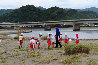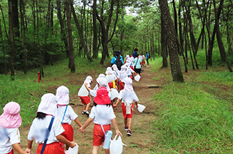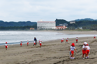 海では、砂浜で貝殻拾いに夢中になり、時々押し寄せてくる大きな波に「キャー!!」と歓声を上げながらとても楽しそうな子ども達でした。