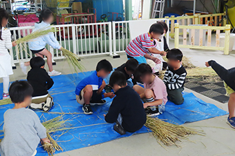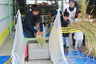 そのあと、脱穀機で取りきれなかったもみを一粒一粒とっていく作業も経験し、お米作りの大変さを身を持って体験したゆりぐみさんの子ども達でした。