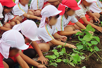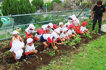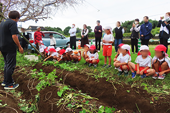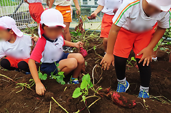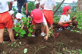 5月に植えたさつまいもの苗は、たくさんのつるとはっぱをつけ、いよいよ収穫の日を迎えました。