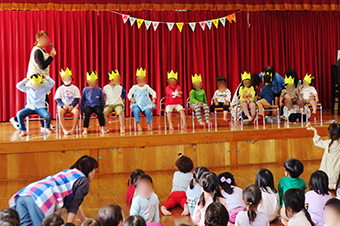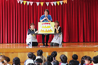 10月は、12人のお友達がお誕生日を迎え、ステージにあがりみんなにお祝いしてもらいましたよ。